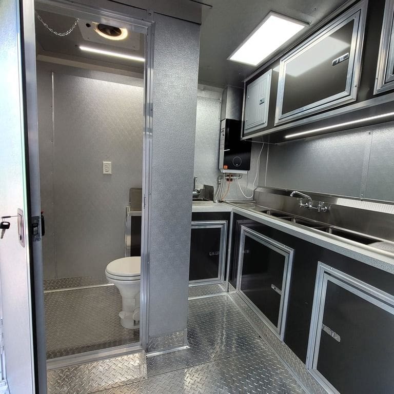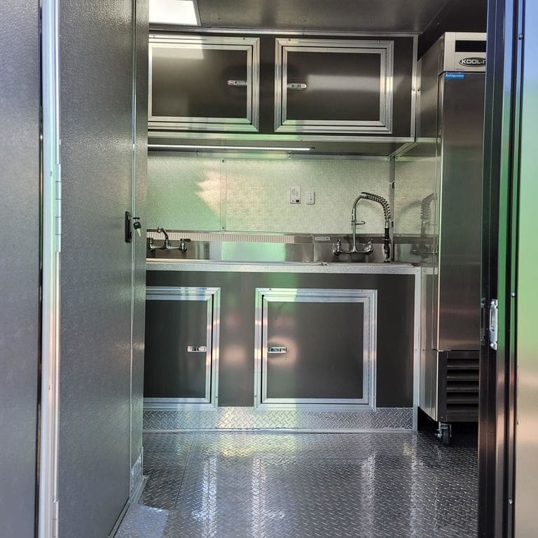 3×5 concession window with glass and screens – 12” from rear walls on passengers side